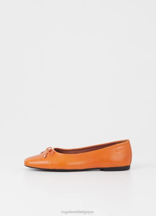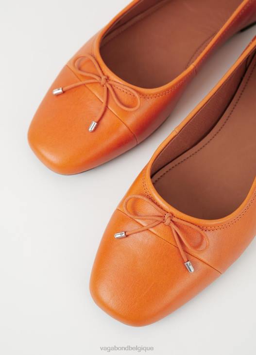 jolin est la ballerine de tous les jours au look contemporain. le modèle est confectionné en cuir orange avec des bouts arrondis et un nœud décoratif avec des détails en métal. les petits talons mesurent 11 mm.