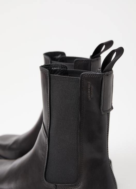 nous vous présentons jillian, la version moderne des bottines chelsea classiques de cette saison. le style est complété par des orteils carrés et des semelles extérieures solides, créant un look contemporain. confectionnée en cuir noir, la tige mi-haute est dotée de panneaux latéraux élastiques pour un port facile. les semelles extérieures solides et les talons modestes offrent un soulèvement subtil pour plus de confort. d'autres détails incluent des languettes à enfiler et des coutures décoratives le long de la tige.