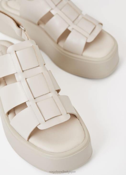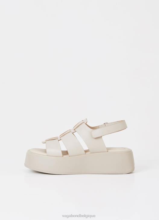 courtney apporte une version améliorée des sandales de pêcheur classiques. le style est confectionné en cuir blanc cassé, avec des lanières en cuir tressé et une sangle arrière réglable. les semelles plates évasées mesurent 50 mm.