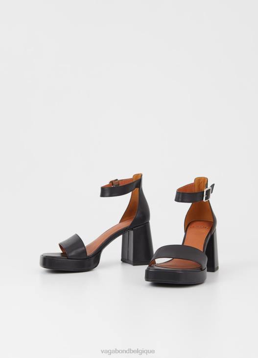 les plateformes d'été fiona ont un look à la fois intemporel et sophistiqué. le style est confectionné en cuir noir avec un talon fermé, une tige à une sangle et une bride de cheville réglable avec fermeture à boucle. les semelles extérieures à plateforme solide reposent sur des talons carrés de 85 mm.