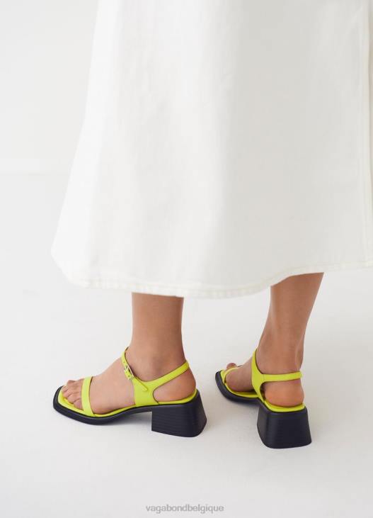 ines est la sandale à talons à lanières au look minimaliste. le modèle est confectionné en cuir vert citron avec un bout carré, une tige minimaliste et une bride à boucle réglable. les talons carrés solides mesurent 53 mm.