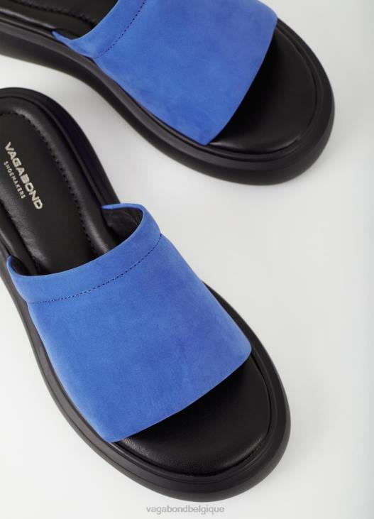 blenda est le toboggan de piscine minimal avec une esthétique avant-gardiste. le modèle est confectionné en nubuck bleu cobalt avec une tige légèrement rembourrée, des orteils ouverts et un design à enfiler. les semelles extérieures arrondies de couleur contrastée mesurent 40 mm.