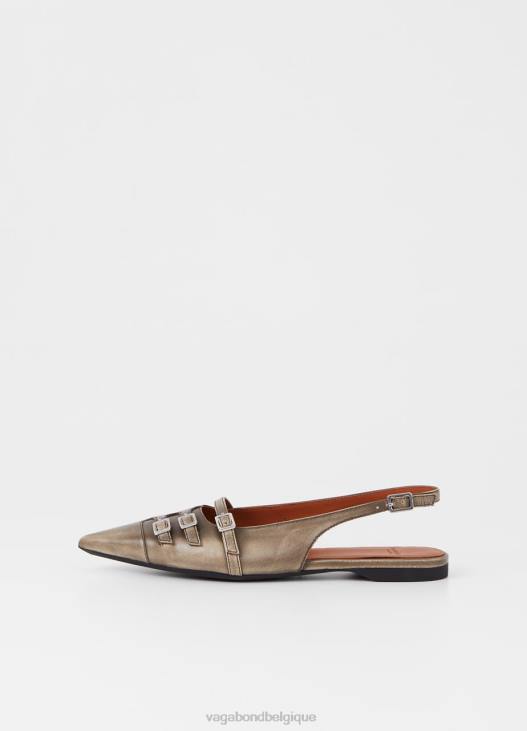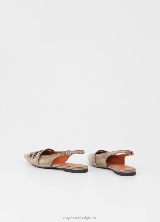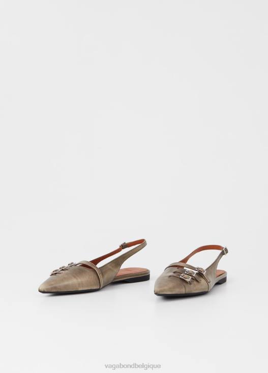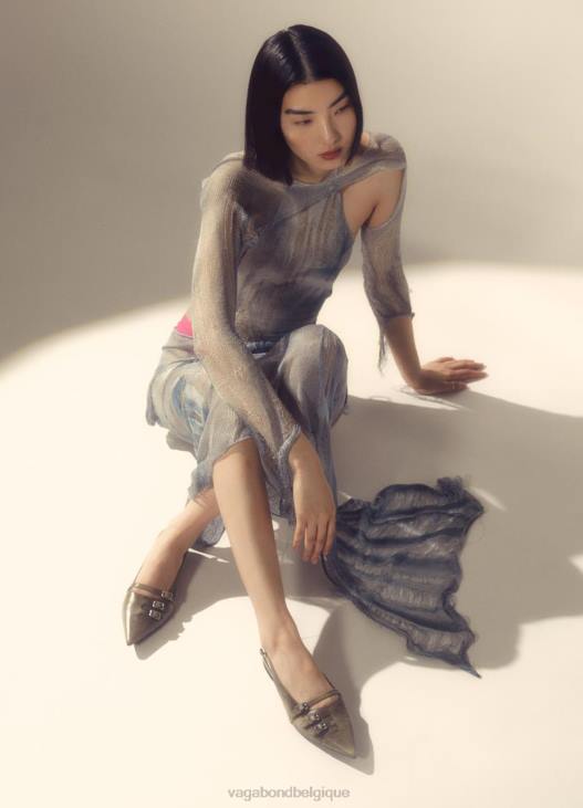 hermine, ce sont les ballerines avant-gardistes au look audacieux. le modèle est confectionné en cuir brossé grège avec des boucles argentées, un bout effilé et une bride arrière avec fermeture à boucle. les petits talons mesurent 10 mm.
