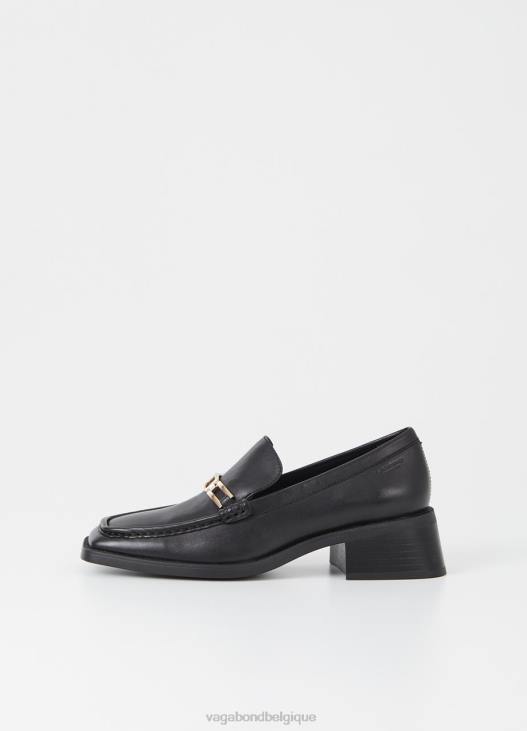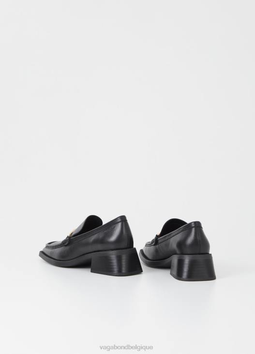 les mocassins à talons modernes blanca sont confectionnés en cuir noir, avec des bouts carrés et une chaîne métallique décorative sur l'empeigne. le style est complété par des talons évasés de 47 mm.