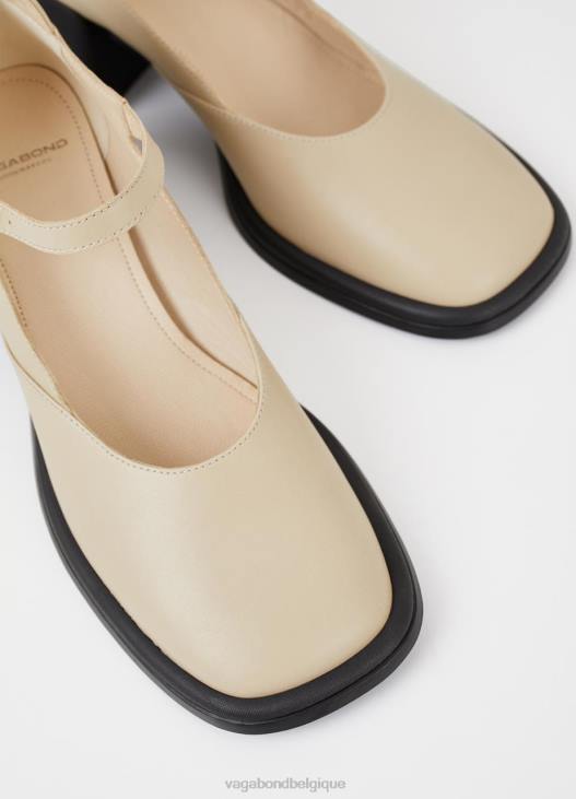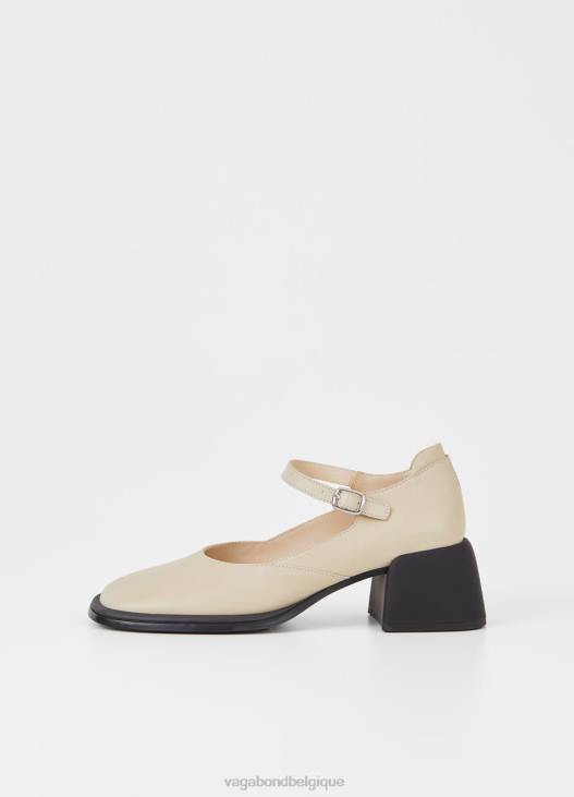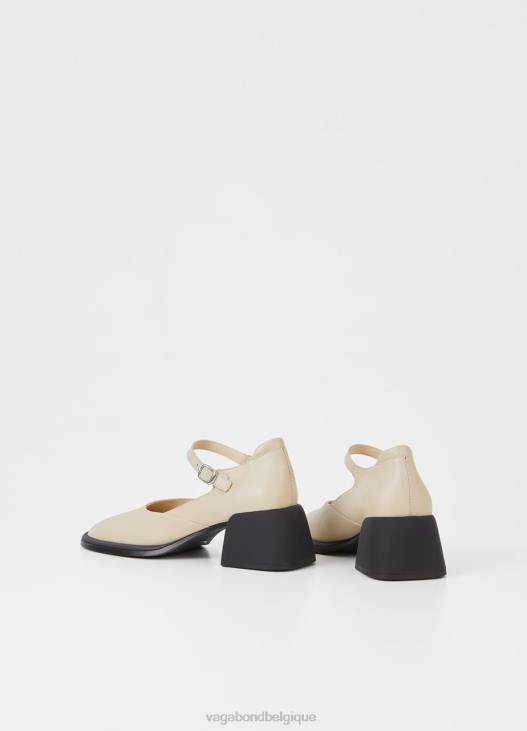ansie sont les escarpins Mary Jane contemporains avec une expression mise à jour. le modèle est confectionné en cuir blanc cassé avec un bout arrondi et une bride décorative à la cheville avec fermeture à boucle. les talons blocs évasés mesurent 59 mm.