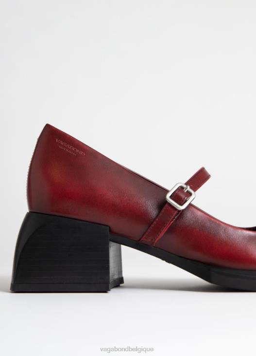 vivian est l'escarpin mary jane avec une silhouette audacieuse. le style exclusif vagabond est confectionné en cuir poli rouge avec des bouts pointus et une bride de cheville délicate avec une fermeture à boucle argentée. les talons sculpturaux mesurent 55 mm.