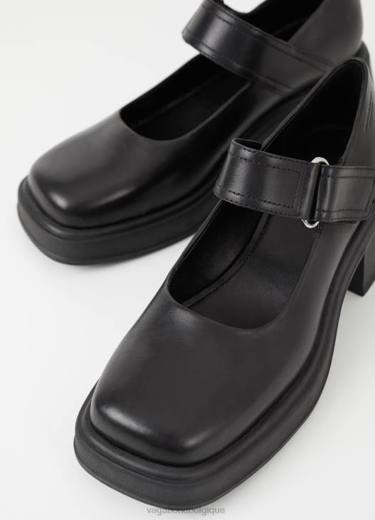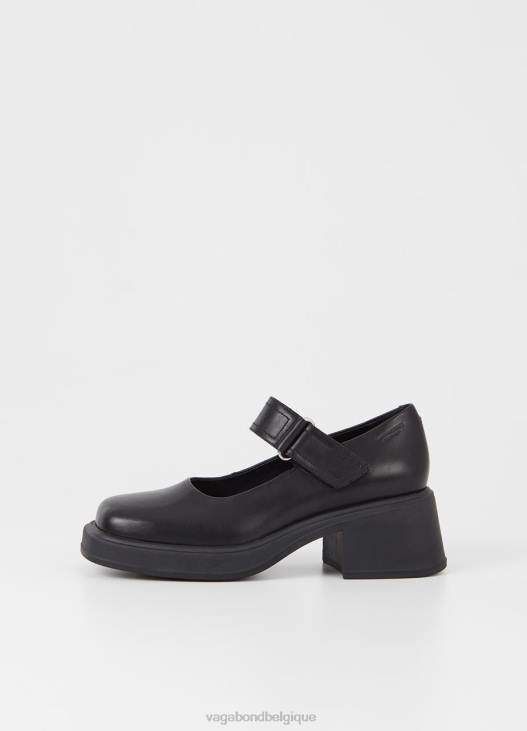 dorah est la chaussure Mary Jane contemporaine avec une silhouette inspirée des années 90. le style est confectionné en cuir noir avec des orteils carrés et une sangle en cuir réglable sur la tige. les talons carrés solides mesurent 59 mm.
