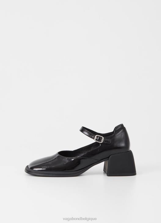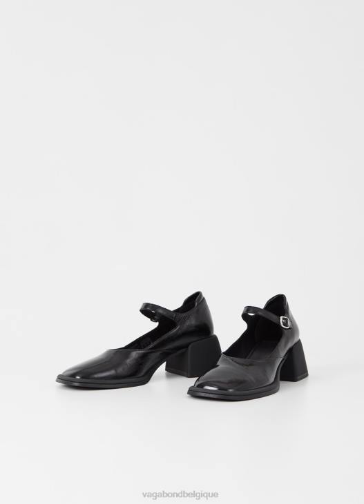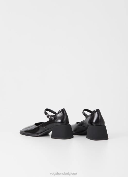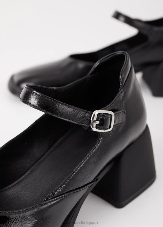 ansie sont les escarpins Mary Jane contemporains avec une touche moderne. le modèle est confectionné en cuir verni noir avec un bout arrondi et une bride décorative à la cheville avec fermeture à boucle. les talons blocs évasés mesurent 59 mm.