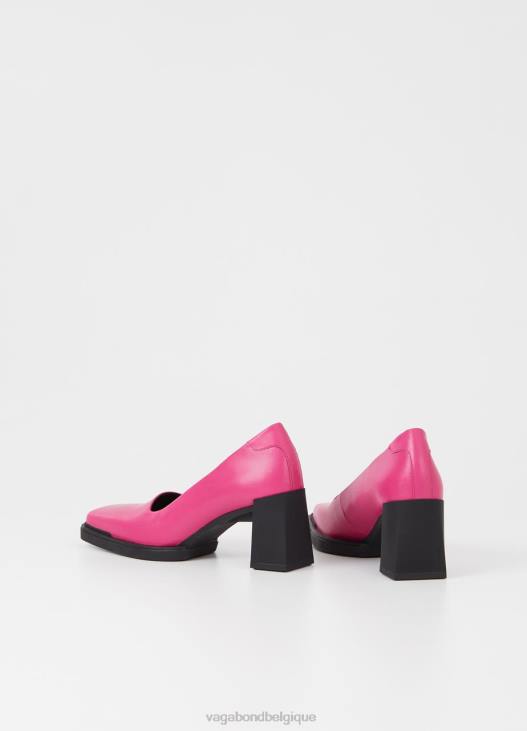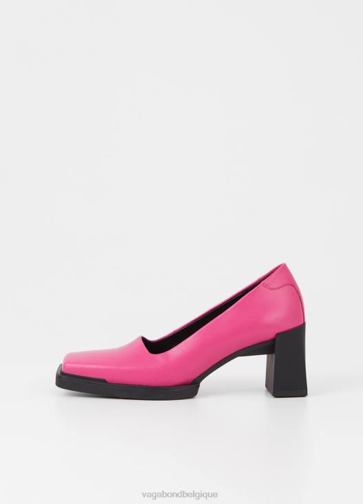 les escarpins modernes edwina sont confectionnés en cuir hyper rose avec des bouts carrés pointus et une tige d'inspiration rétro. les talons blocs de couleur contrastante mesurent 74 mm.